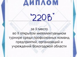 Молодежная команда ППО «Вологдаэнерго» «220 В» стала второй в интеллектуальном турнире среди команд профсоюзных организаций области.