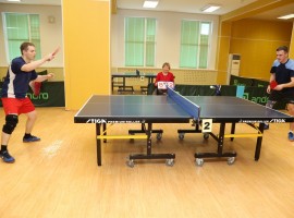 В упорной борьбе в настольном теннисе первенствовали спортсмены Череповецких электрических сетей (Д.Комар, И.Мишин, А.Клинова).